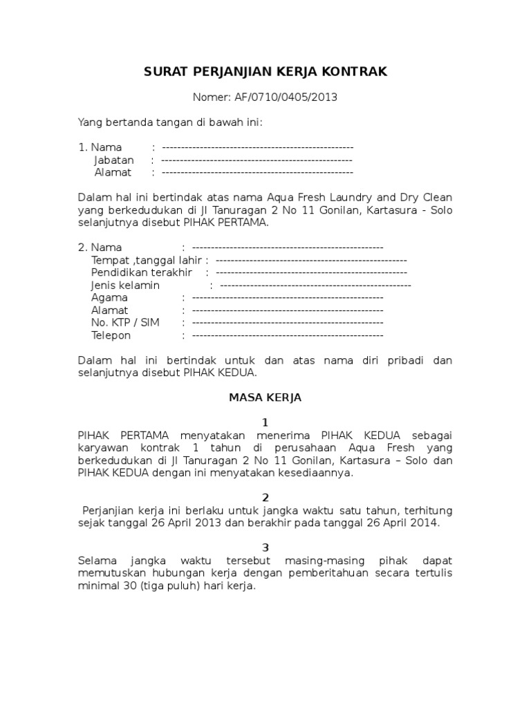 Kontrak kerja seorang karyawan ternyata pengaruhi proses pengajuan kredit. Status karyawan tetap jelas lebih diuntungkan dibanding karyawan kontrak. Sehingga anda perlu memerhatikannya dengan teliti mengenai kontrak kerja karyawan yang ingin anda buat. Membuat surat perjanjian kerja (spk) atau kontrak kerja menjadi suatu kewajiban bagi karyawan baru. Kontrak kerja yang tertulis hitam di atas putih adalah hal yang sangat penting, khususnya di dunia kerja atau di sebuah perusahaan. Perjanjian hukum yang mengatur ketenagakerjaan. Jangan asal kerja, surat kontrak kerja karyawan swasta perlu kamu punya. Menurut keputusan menteri tenaga kerja dan transmigrasi no. Karyawan kontrak adalah karyawan yang bekerja dalam batas waktu tertentu berdasarkan kesepakatan antara karyawan dengan perusahaan. Apa itu pengertian, jenis kontrak kerja karyawan yang biasa digunakan perusahaan? Kontrak kerja ini adalah semacam perjanjian kesepakatan antara karyawan dengan pihak instansi tempatnya bekerja. Komponen yang harus dilihat dalam surat kontrak kerja karyawan swasta. Perusahaan biasanya akan memberikan surat kontrak kerja dihari pertama bagi pegawai barunya.